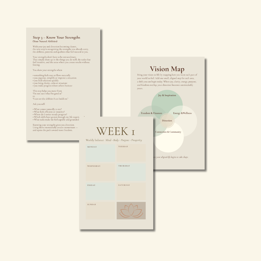 The Gentle Shift is a soft, powerful guide created to help you move from joy → clarity → aligned income → freedom — in a calm, grounded and feminine way.